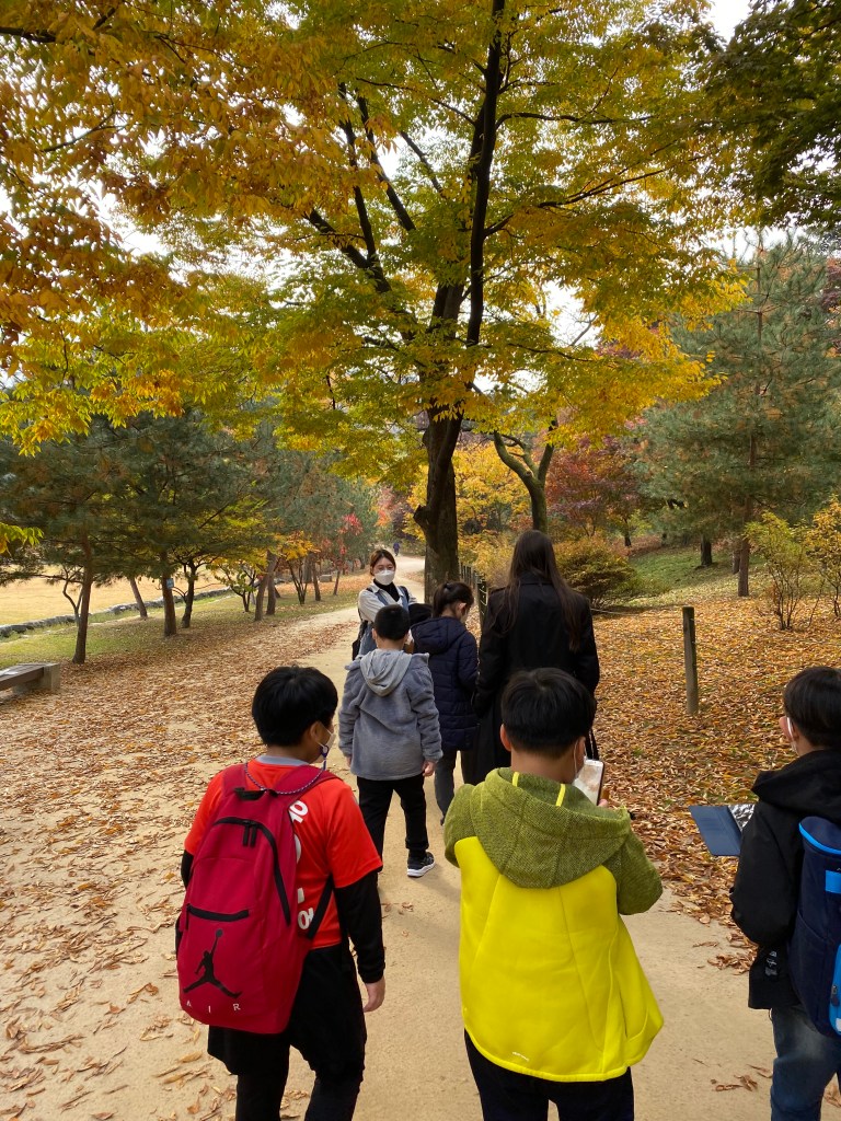 One week, the teachers and I took the kids on a field trip to one of the Royal Tombs of the Joseon Dynasty and to see the fall leaves at a public park. This Park was unique because it is a UNESCO world heritage site since one of Koreas’ kings is buried there. It was great to be outside before the weather got too cold and beautiful leaves. I learned that all kids like to jump in a big pile of leaves.