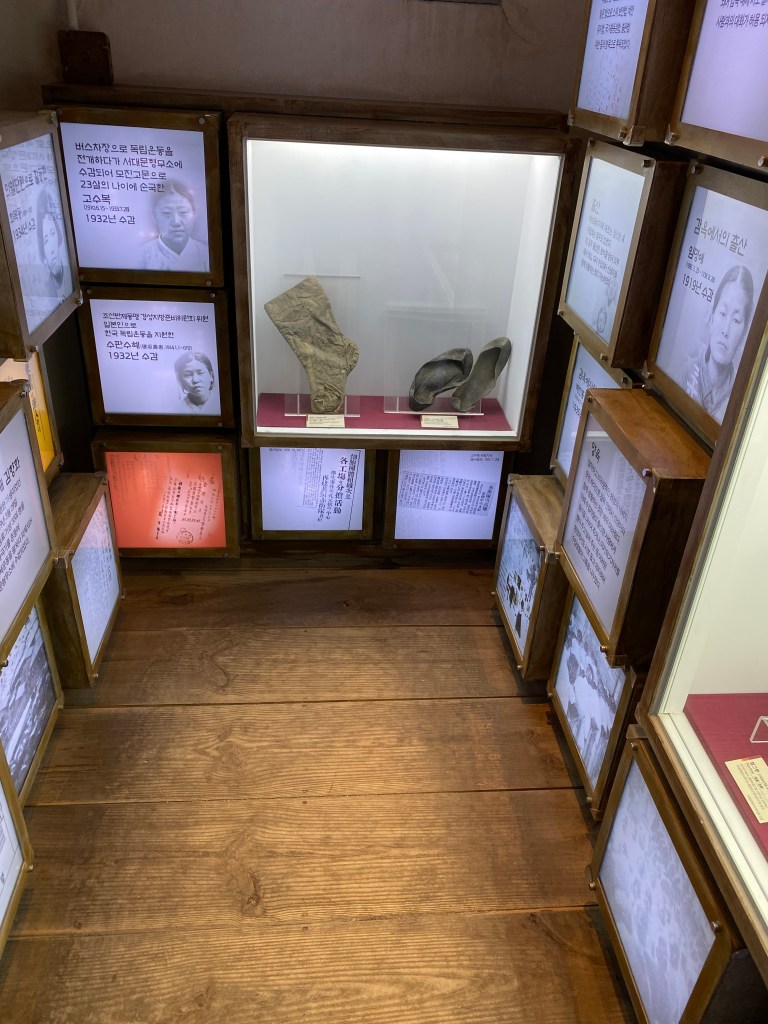 I found it interesting that the museum placards discussing the Japanese occupation were written in Korean, English, Japanese, and German. However, when you get to the prison wing from the Korean rule, all placards were written in Korean only. If not for my friend Yuki, who translated the Korean signs for us, I would not have understood what occurred while the Korean government ran the prison.